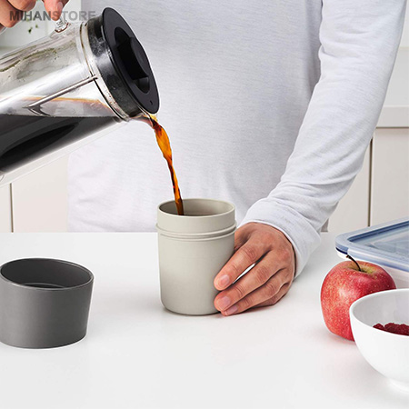 در هنگام رفتن به مسافرت یا زمانی که مشغول به رانندگی طولانی مدت هستید نمی ‌توانید از لیوان های معمولی برای نوشیدن آب و سایر مایعات استفاده نمایید. در این مواقع بهتر است تا از ماگ مسافرتی که اغلب از جنس پلاستیک یا فلز ساخته می شود استفاده کنید. ماگ مسافرتی ایکیا مدل TROLIGTVIS نسبت به سایر لیوان های مسافرتی دارای کیفیت و کارایی بالاتری می باشد و با استفاده از آن می توان تا مدت ها از خرید لیوان مسافرتی جدید بی نیاز شد. ماگ مسافرتی ایکیا مدل TROLIGTVIS از جنس پلاستیک پلی پروپیلن تهیه شده است، به همین علت دارای مقاومت و کیفیت بسیار بالایی می باشد. کیفیت این محصول به اندازه ای بالاست که در اثر برخورد ضربه دچار آسیب نخواهد شد و با گذشت زمان سطح آن پوسته پوسته نمی شود. این محصول دارای دربی از جنس سیلیکون است که با قرار گرفتن آن روی لیوان می ‌توان از عدم خروج مایعات اطمینان حاصل کرد. به همین علت می توانید با اطمینان خاطر مایعات را درون آن ریخته و نگرانی از جهت افتادن لیوان روی زمین و خروج محتوای درون آن نداشته باشید. درب این محصول به صورت پیچی روی بدنه قرار می گیرد و باز و بسته کردن آن بسیار آسان خواهد بود. این ماگ دارای ارتفاع ۱۲ سانتی متری و حجم ۰.۳ لیتری می باشد و به همین علت حجم مناسبی از مایعات را در بر می‌گیرد. برای این لیوان رنگ بندی های متنوعی در نظر گرفته شده که از آن ها می توان به آبی، سبز، طوسی و صورتی اشاره نمود. بنابراین هر کدام از اعضای خانواده می ‌توانند با توجه به سلیقه خود یکی از این لیوان ها را انتخاب کنند. رنگ های تشکیل دهنده این محصولات بسیار زیبا هستند و هر نوع سلیقه ای را جذب می کنند. قطر بدنه استوانه ای این لیوان 12 سانتی متر است که باعث می شود تا بتوان به راحتی آن را در دست گرفت و از ایجاد خستگی در دستان شما جلوگیری می نماید. همچنین روی درب این محصول دو روزنه وجود دارد که کمک می کند تا بخار نوشیدنی های داغ مانند چای و قهوه به آرامی خارج شوند و دمای این نوشیدنی ها به حد نرمال برسد. روزنه دیگر نیز برای خروج مایعات در نظر گرفته شده و به این صورت به راحتی می توان محتویات درون لیوان را نوش جان نمود.