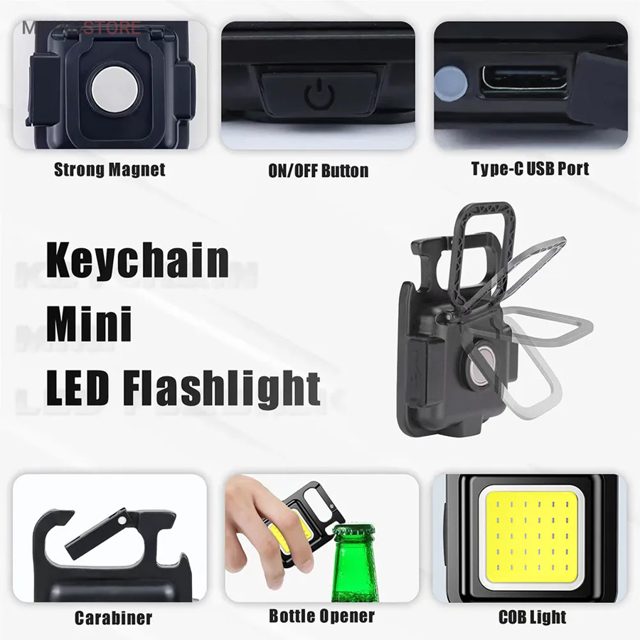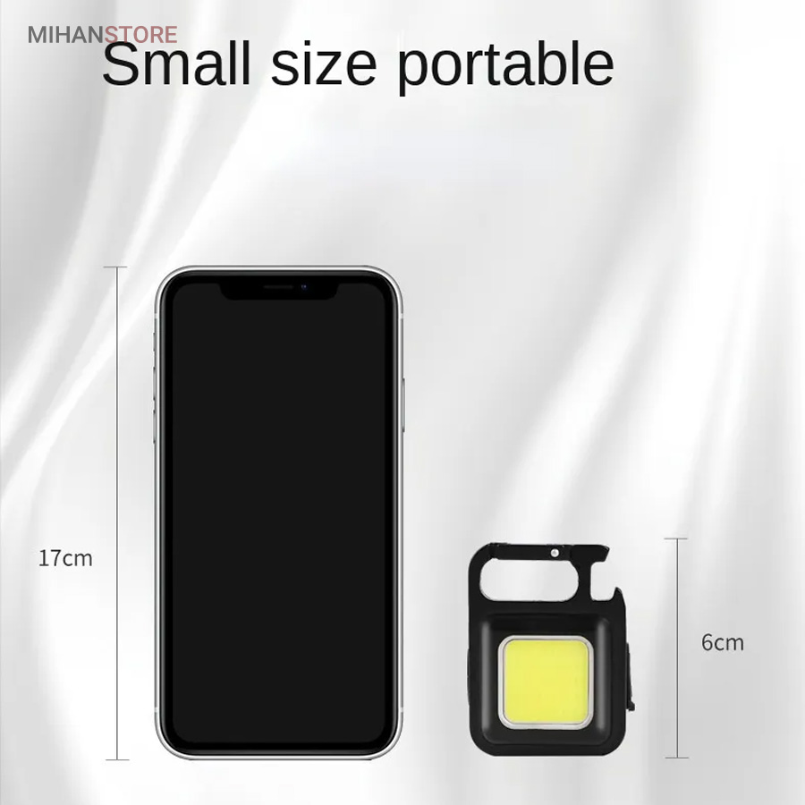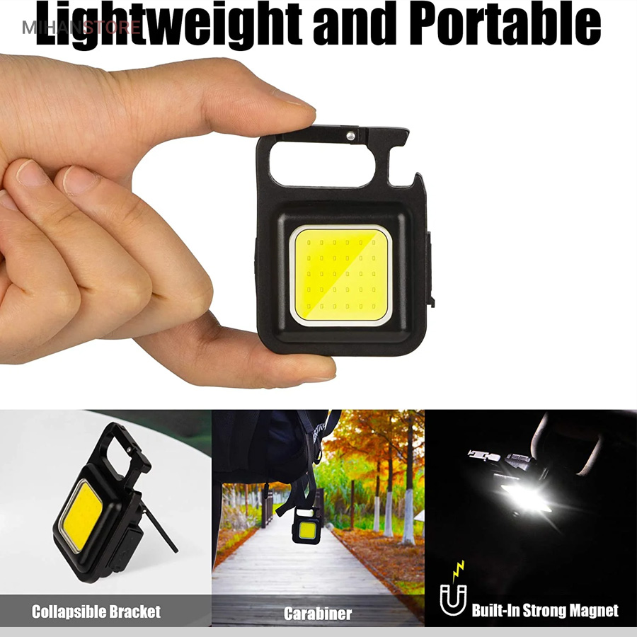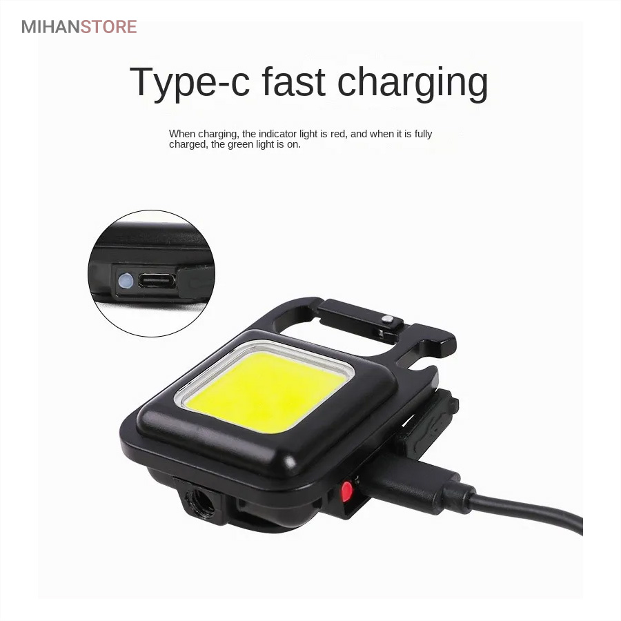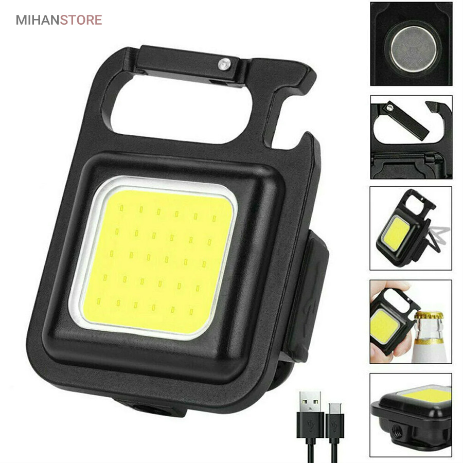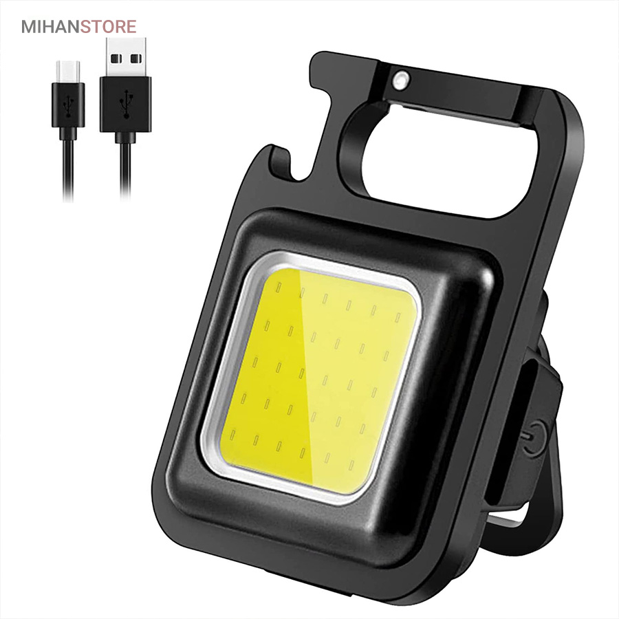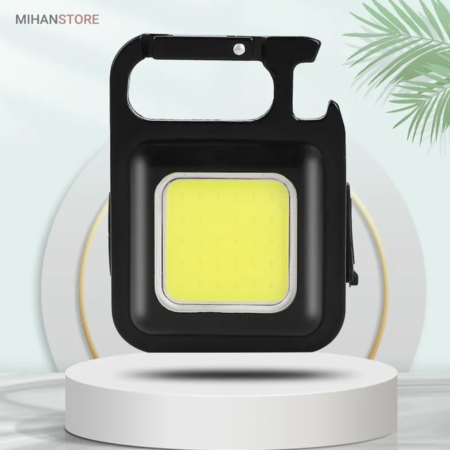 وقتی زمان شارژ  مجدد فرا می رسد، کافی است آن را به هر منبع تغذیه USB وصل کنید. این چراغ  قوه شارژی USB توسط یک باتری داخلی قابل شارژ با ظرفیت 500 میلی آمپر  ساعت، کابل شارژ تایپ C به USB تغذیه می شود. معمولاً حدود 2 ساعت طول  می کشد تا کاملاً شارژ شود. پایه آهنربایی  قوی و دسته قابل چرخش به شما امکان می دهد در حین کار دستان خود را رها  کنید. طراحی آهنربا به لامپ اجازه می دهد تا به هر فلزی متصل شود و دسته  قابل تاشو 180 درجه اجازه می دهد تا لامپ در زوایای مختلف قرار گیرد یا در  مکان های خاصی آویزان شود.این چراغ قوه  جاکلیدی می تواند نورهایی با حداکثر 800 لومن ساطع کند. این یک نور روشن با  زاویه گسترده ارائه می دهد. LED فنی بزرگ COB اجازه می دهد تا از این چراغ  به عنوان چراغ کار کوچک و چراغ اضطراری استفاده شود. چراغ قوه قابل حمل دارای کارابینی است که به راحتی به حلقه کلید یا کیف وصل می شود و در  برابر آب و ضربه مقاوم است. از طرف دیگر، بطری بازکن خوبی است. شما می  توانید از آن در سناریوهای مختلفی مانند کمپینگ، پیاده روی سگ، جستجوی  چیزها، تعمیر استفاده کنید.