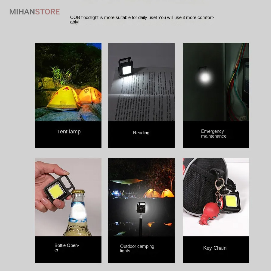 مینی چراغ پر قدرت چندکاره COB محصول کاربردی برای استفاده در کمپینگ و مسافرت های بیرون شهری حتی داخل منزل است. این مدل پروژکتور با طراحی و کیفیت عالی خود در مسافرت ها و گردشگری و همچنین درموارد اضطراری همچون نبودن برق, به سهولت مورد استفاده قرار میگرد. این پروژکتور COB با سه حالت نوردهی بصورت ثابت (پر نور , کم نور) و چشمک زن (SOS) محیط اطراف خود را به طور کامل روشن می کند. در پشت این محصول یک آهنربا پر قدرت و یک دسته تعبیه شده است که طراحی آهنربا به این محصول اجازه می دهد تا به هر فلزی متصل شود شما میتوانید به سرعت آن را به یک سطح فلزی، حتی وارونه (مثلاً به سقف یا کاپوت ماشین) متصل کنید و دسته قابل تاشو 180 درجه اجازه می دهد تا لامپ در زوایای مختلف قرار گیرد یا در  مکان های خاصی آویزان شود ومحیط را کاملا روشن کند.