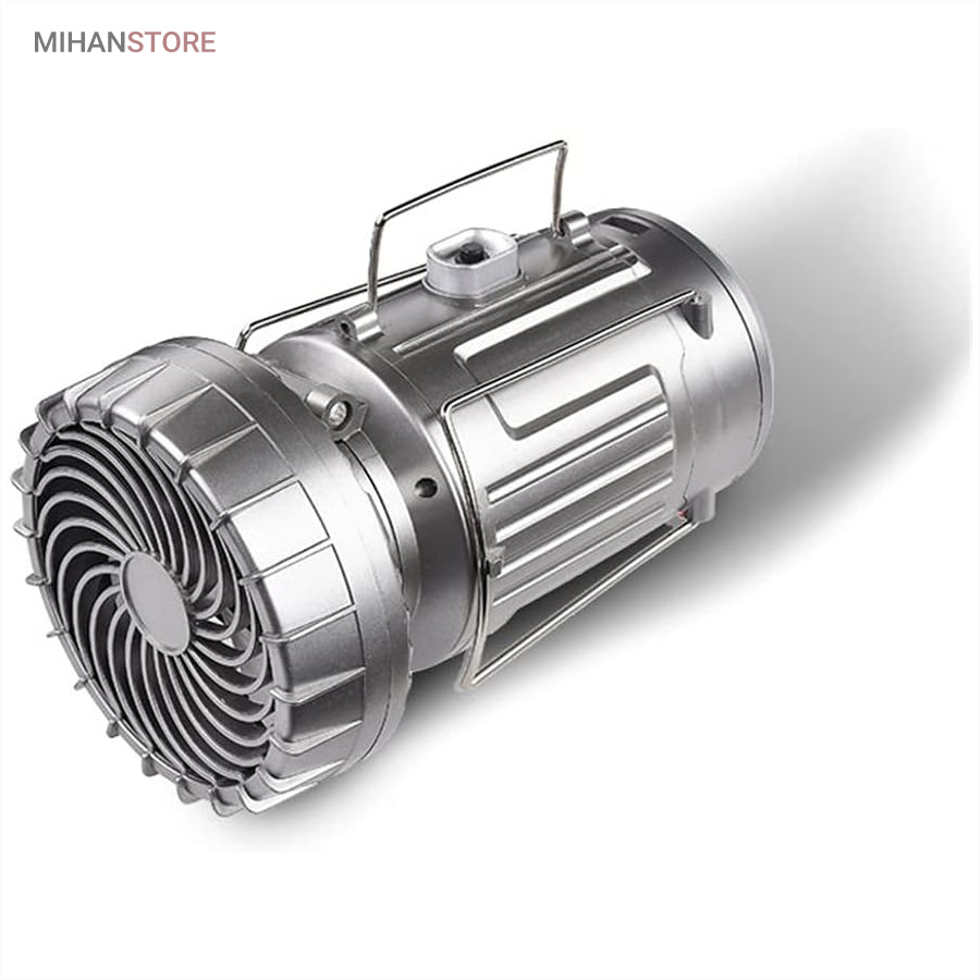 چراغ کمپینگ خورشیدی دارای پنکه و پاوربانک محصولی ساده درعین‌حال کاربردی است که می‌تواند در زمان سفر یا در شرایط اضطراری در شهر مورد استفاده قرار گیرد. در قسمت بالایی این فانوس، دو دسته‌ی فلزی قرار دارد؛ به همین دلیل می‌توان آن را داخل چادر یا هر سطح برجسته‌ای آویزان کرد و از نور آن بهره برد. چراغ کمپینگ و پاوربانک خورشیدی چندکاره همراه خوبی برای سفر به طبیعت، کوه‌نوردی و پیاده‌روی در هنگام شب هستند. گاهی ما به مکانی سفر می‌کنیم که نور کافی در آن وجود ندارد؛ در این صورت، داشتن یک لامپ فانوسی بسیار ضروری به نظر می‌رسد. همچنین از لامپ آن به‌صورت کشویی استفاده خواهید کرد و در صورت نیاز می‌توانید آن را باز کرده، به‌راحتی از روشنایی این لامپ فانوسی بهره‌مند شده و محیط پیرامون خود را روشن کنید. چراغ کمپینگ و پاوربانک خورشیدی چندکاره انتخابی خوب و باکیفیت برای داشتن سفری خوش است که می‌توانید از آن برای روشن‌کردن چادر، اتومبیل یا هر محیط تاریک دیگری استفاده کنید.